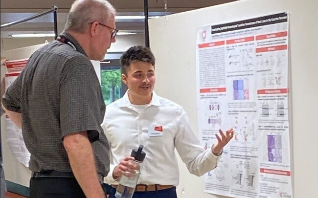 8/2024| Owen presenting at the poster symposium to cap off his CRSP summer research experience